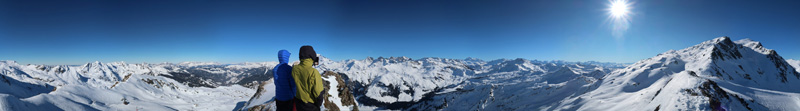 Omschrijving Bewolkt, met lichte sneeuwval zo nu en dan en zon. (Lawine stufe 3)